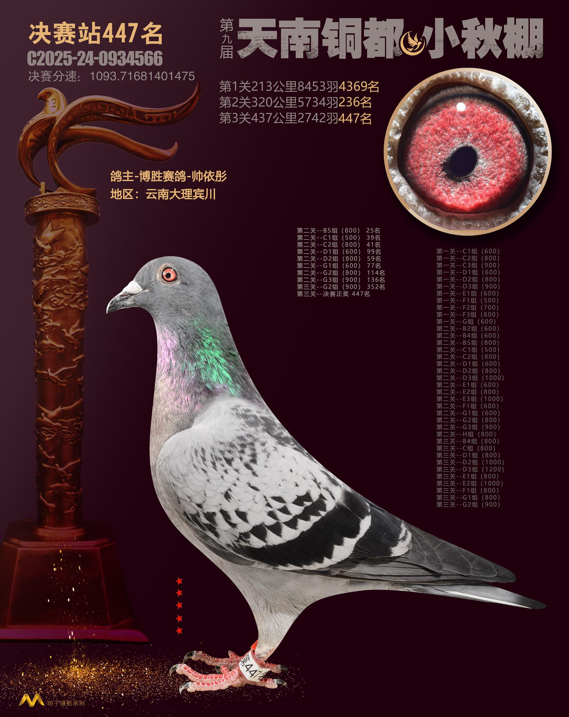 位置:云南天南铜都小棚(小秋棚)2025获奖鸽展示\决赛站447名