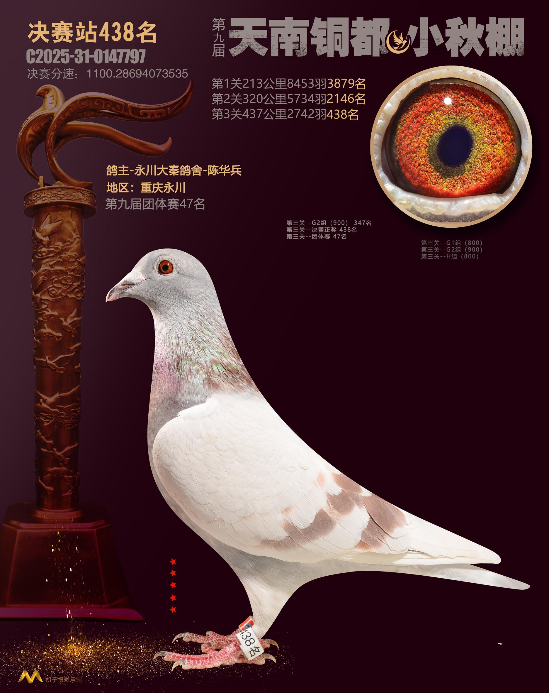 位置:云南天南铜都小棚(小秋棚)2025获奖鸽展示\决赛站438名
