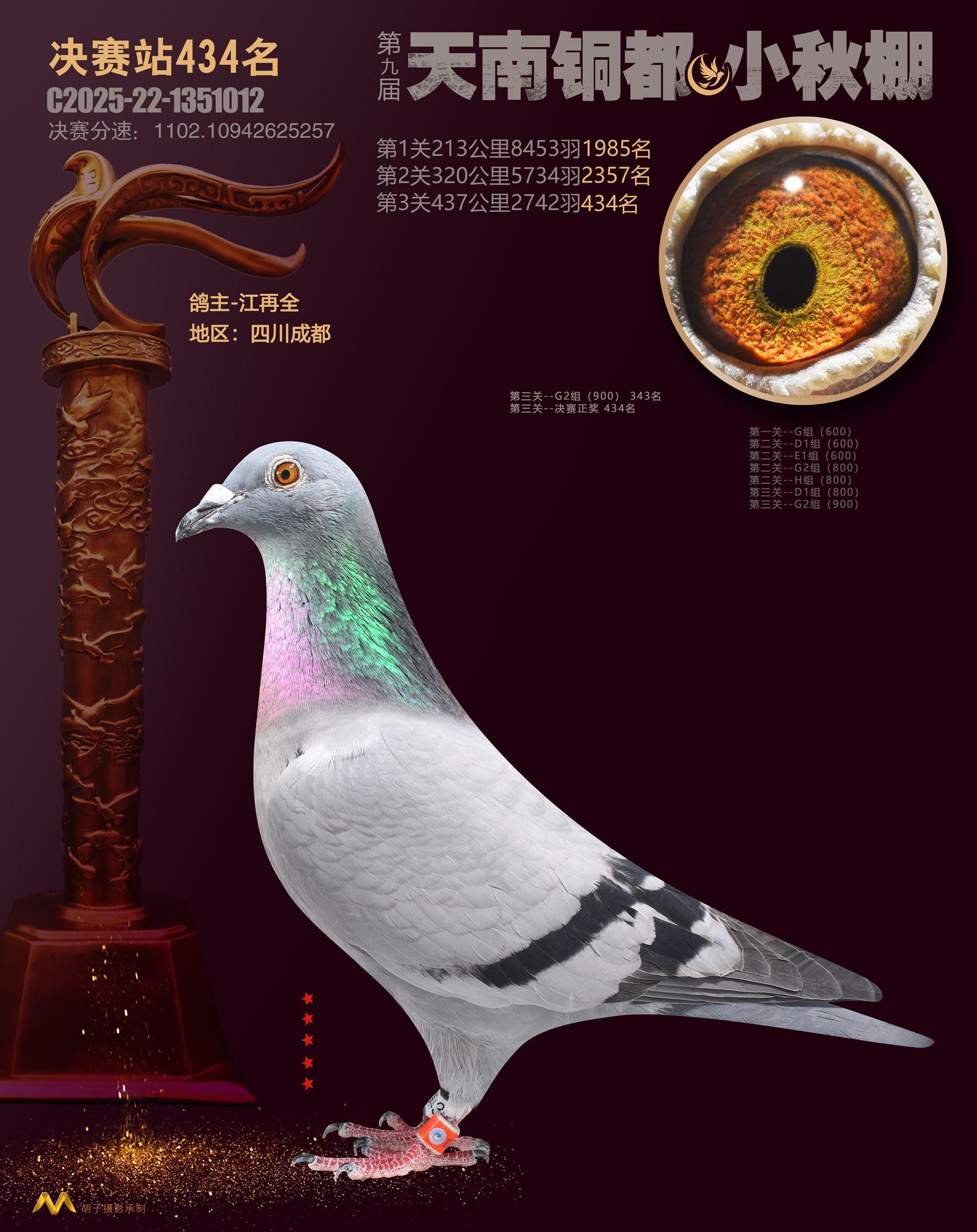 位置:云南天南铜都小棚(小秋棚)2025获奖鸽展示\决赛站434名