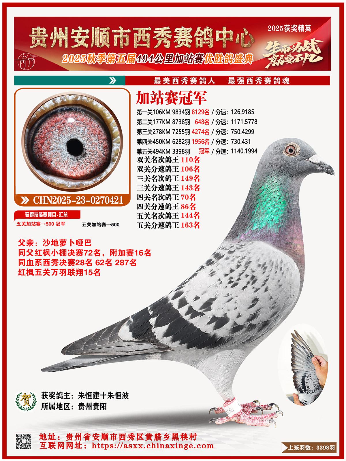 位置:安顺市西秀赛鸽中心2025获奖鸽展示\加站赛1名