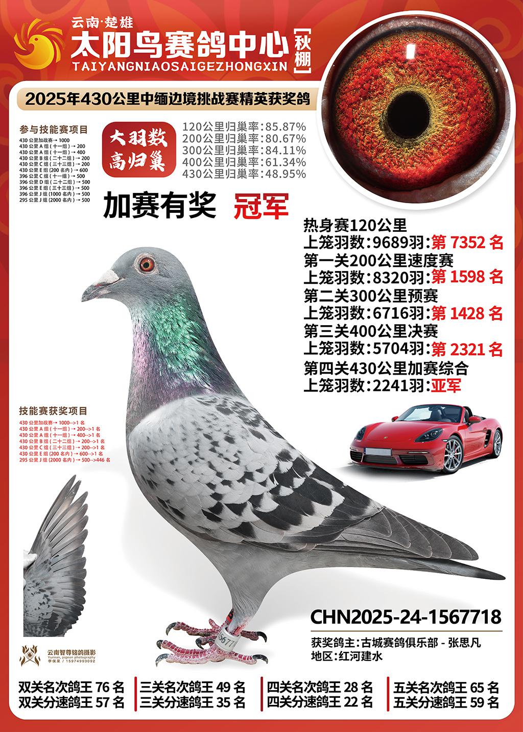位置:云南太阳鸟赛鸽中心2025获奖鸽展示\加赛1名
