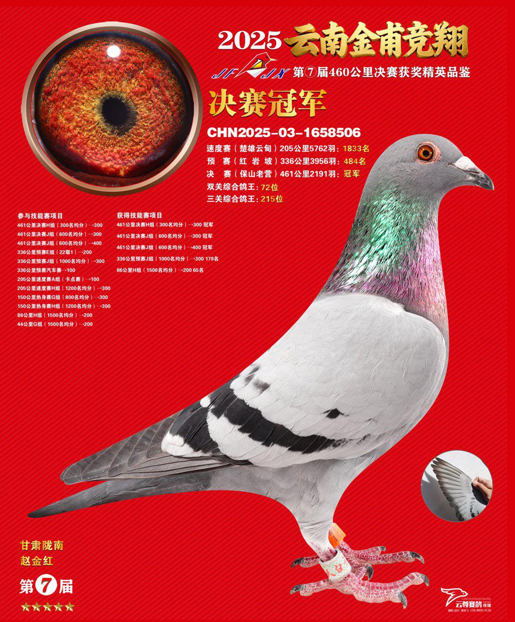 位置:云南金甫竞翔体育发展有限公司2025获奖鸽展示\金甫1名