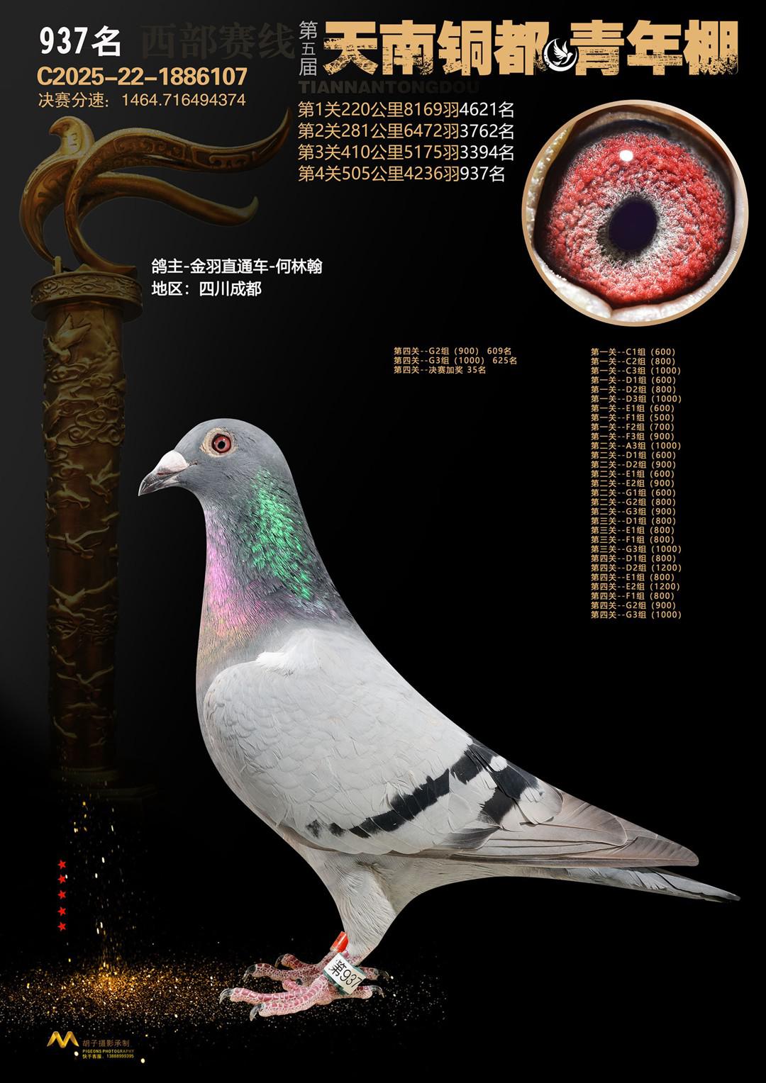 位置:天南铜都青年棚2025获奖鸽展示\决赛站937名
