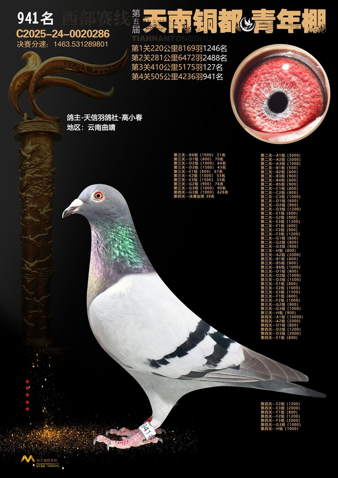 位置:天南铜都青年棚2025获奖鸽展示\决赛站941名