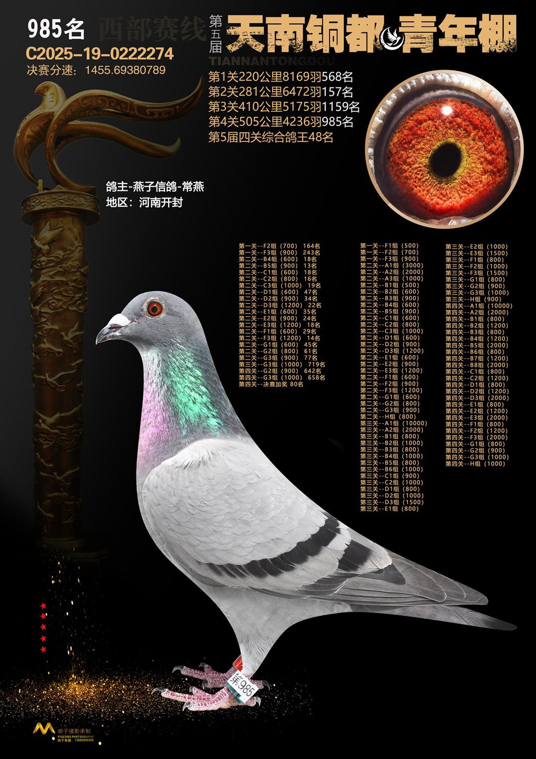 位置:天南铜都青年棚2025获奖鸽展示\决赛站985名