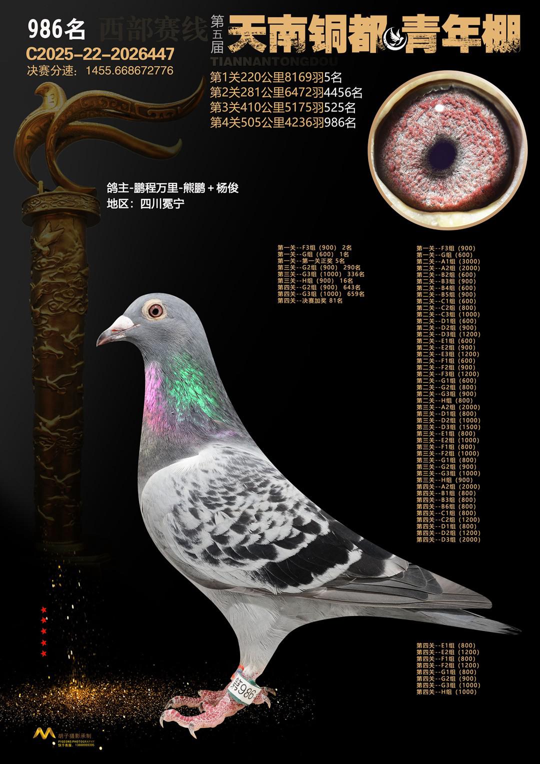 位置:天南铜都青年棚2025获奖鸽展示\决赛站986名