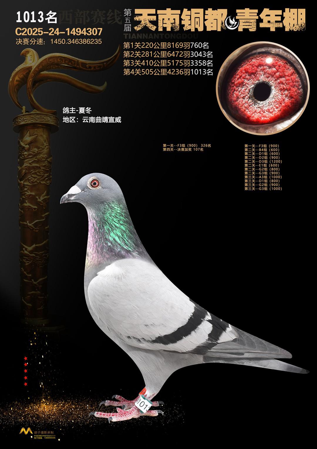 位置:天南铜都青年棚2025获奖鸽展示\决赛站1013名