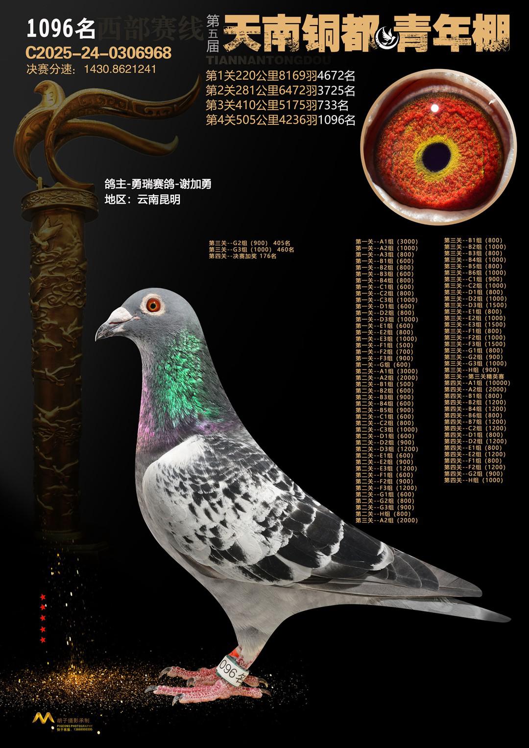 位置:天南铜都青年棚2025获奖鸽展示\决赛站1096名