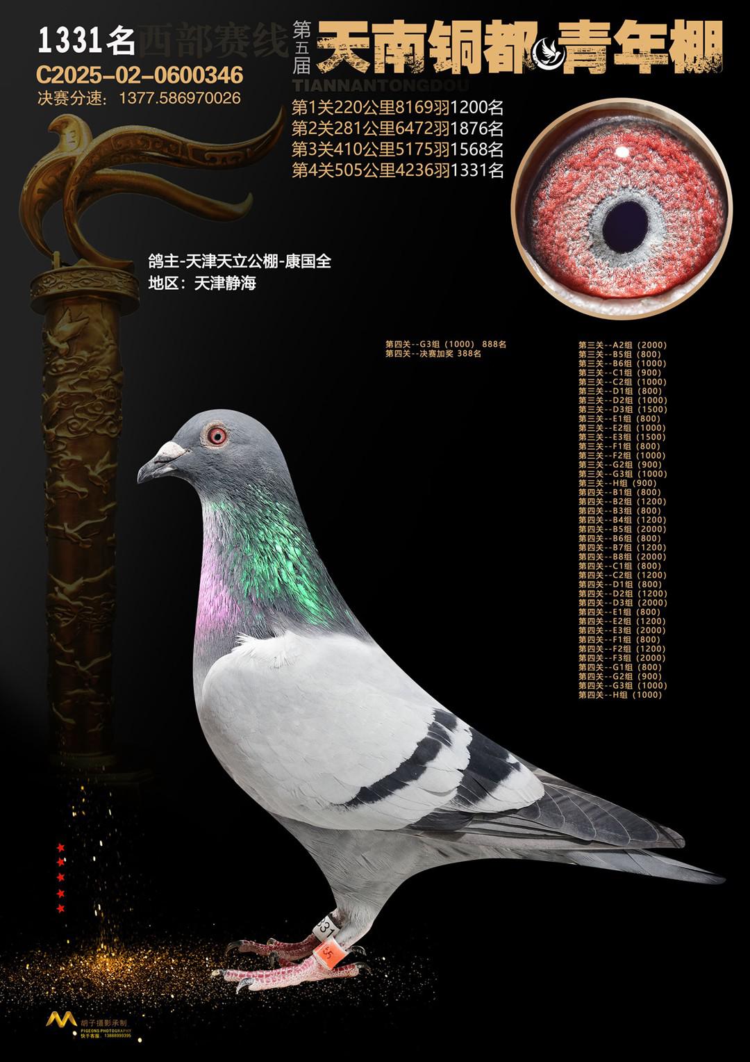 位置:天南铜都青年棚2025获奖鸽展示\决赛站1331名