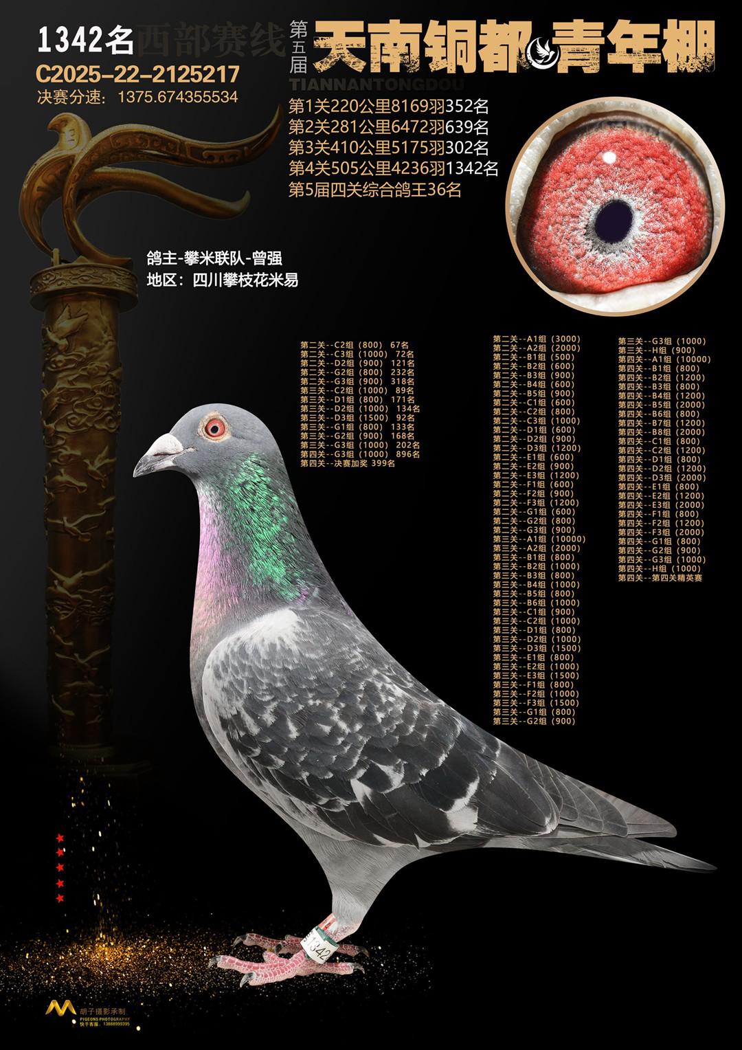 位置:天南铜都青年棚2025获奖鸽展示\决赛站1342名