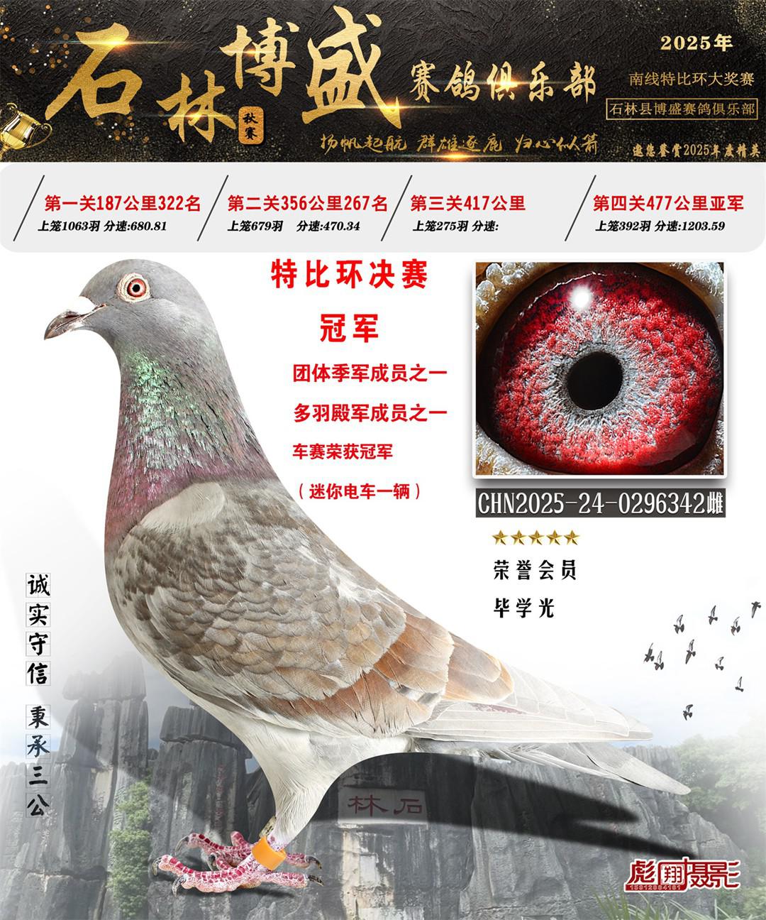 位置:石林博胜赛鸽俱乐部2025获奖鸽展示\1名