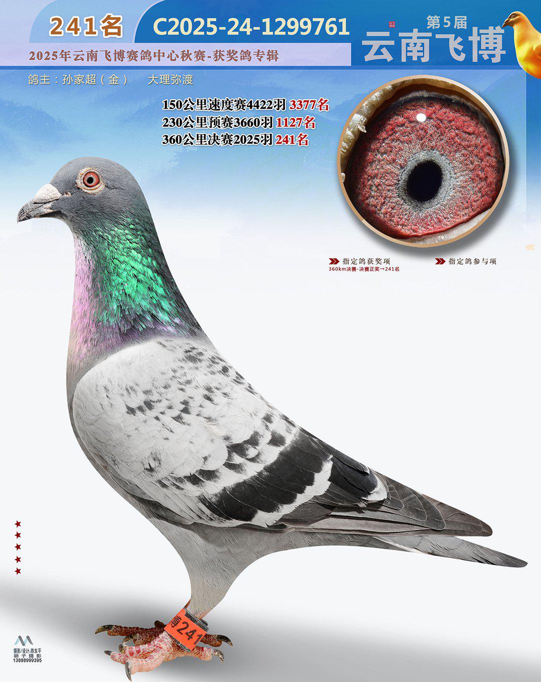 位置:云南飞博赛鸽中心2025获奖鸽展示\241