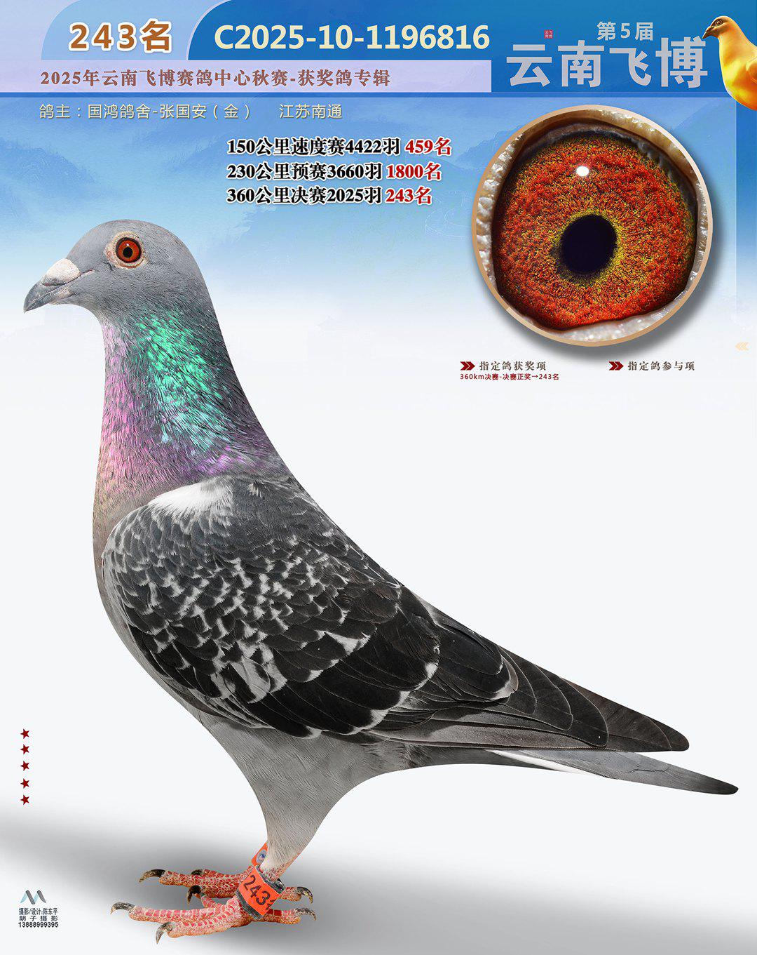 位置:云南飞博赛鸽中心2025获奖鸽展示\243