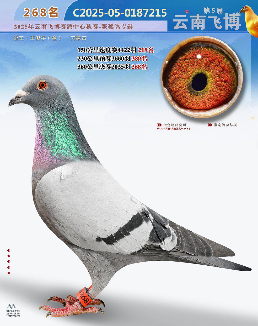 位置:云南飞博赛鸽中心2025获奖鸽展示\268