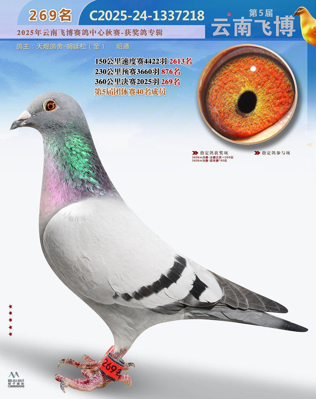 位置:云南飞博赛鸽中心2025获奖鸽展示\269