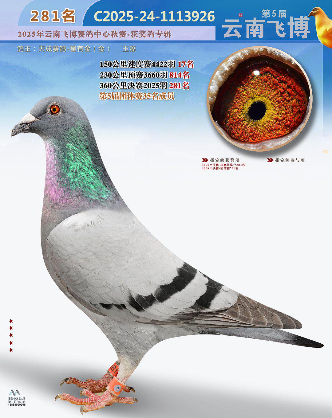 位置:云南飞博赛鸽中心2025获奖鸽展示\281