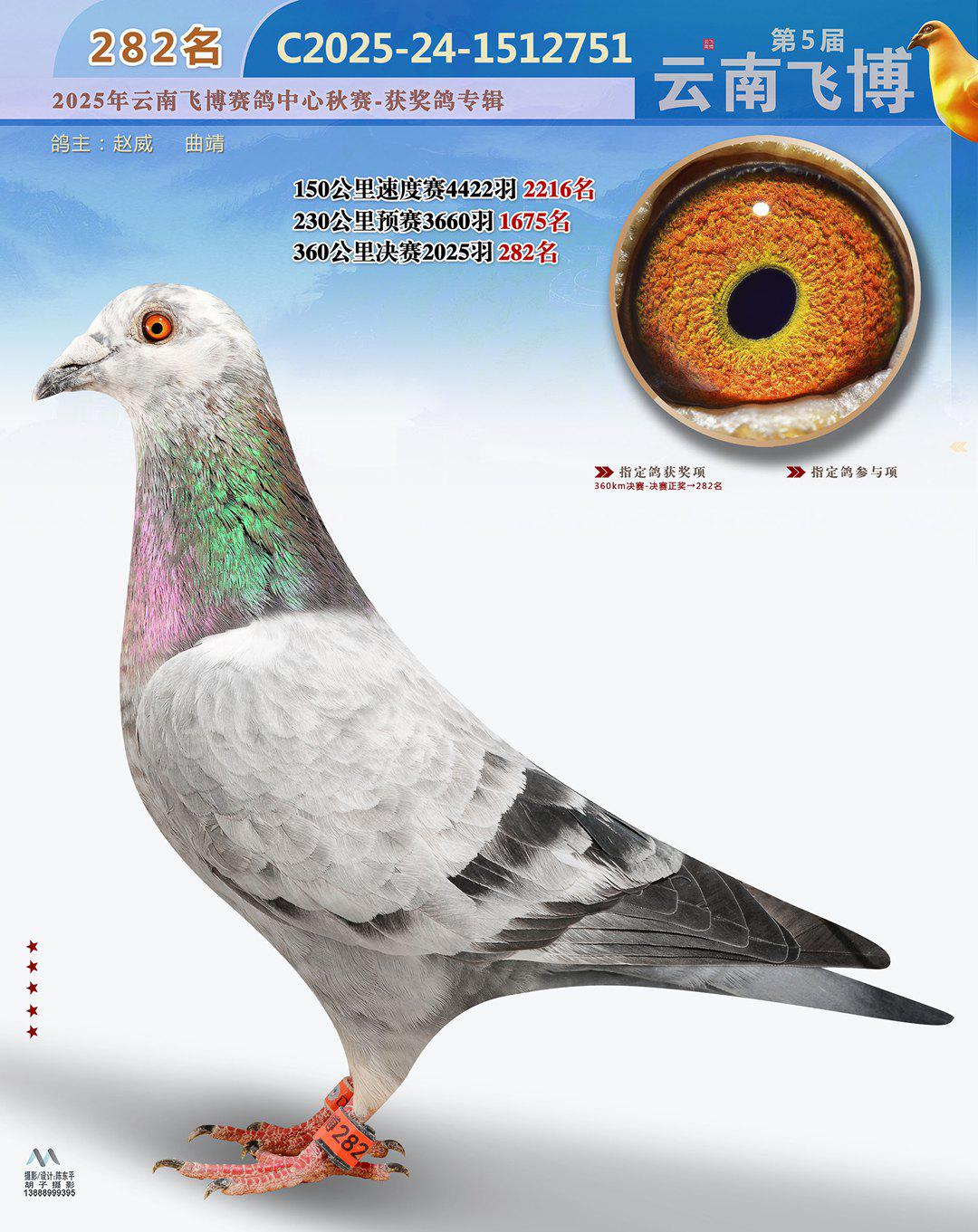 位置:云南飞博赛鸽中心2025获奖鸽展示\282