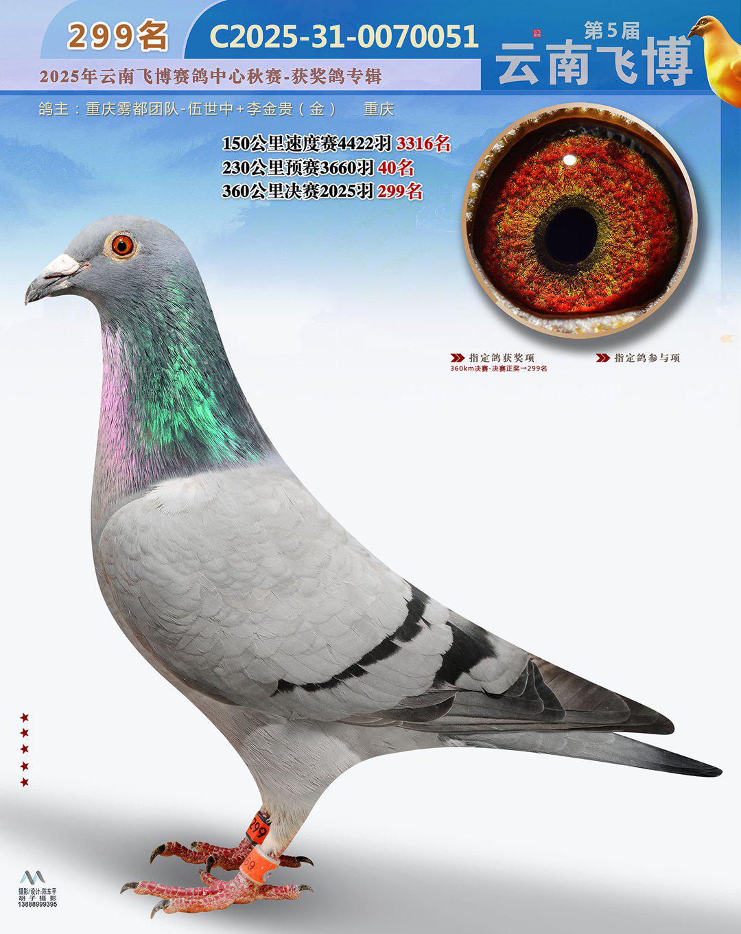 位置:云南飞博赛鸽中心2025获奖鸽展示\299