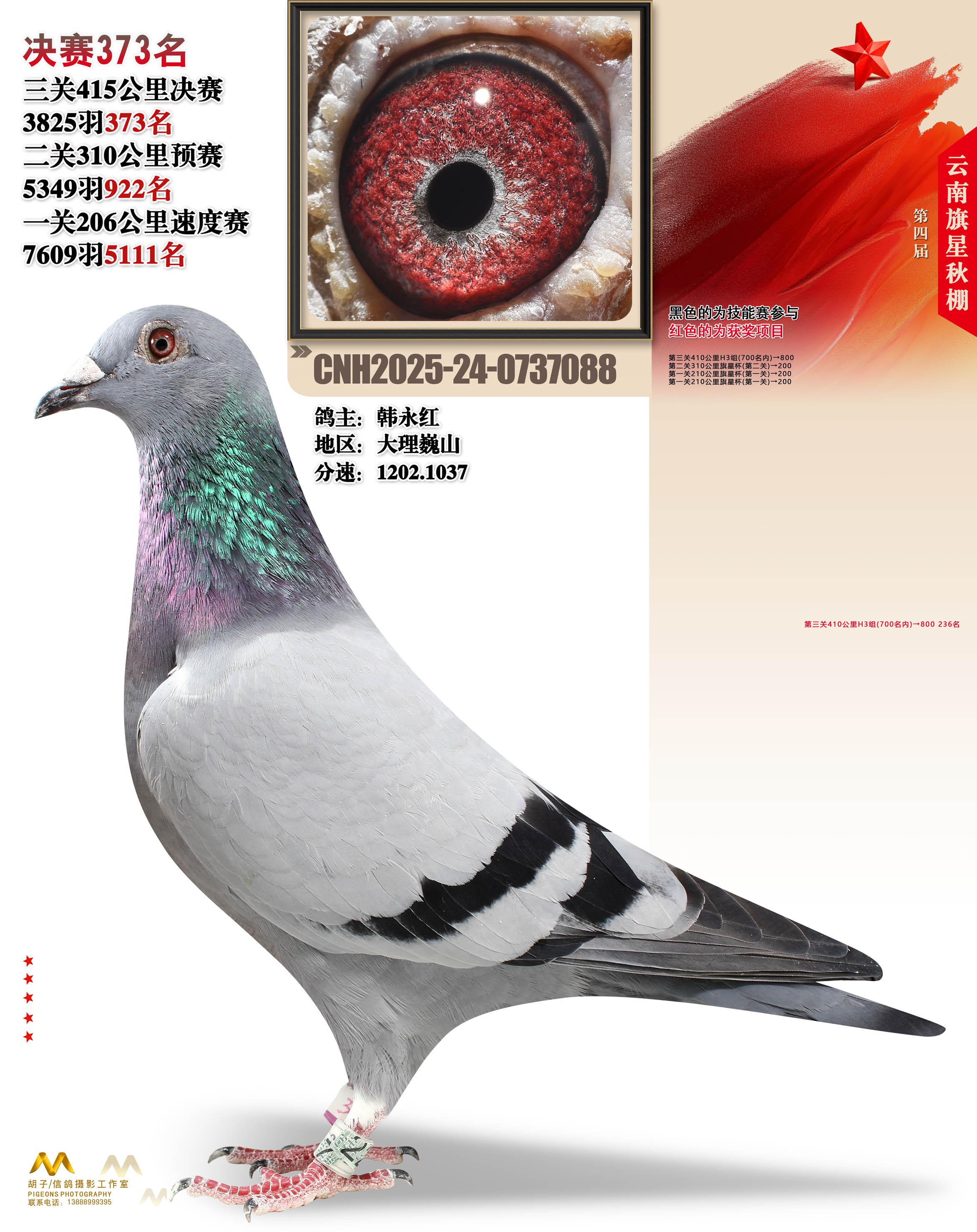 位置:云南大理旗星赛鸽中心2025获奖鸽展示\决赛373名