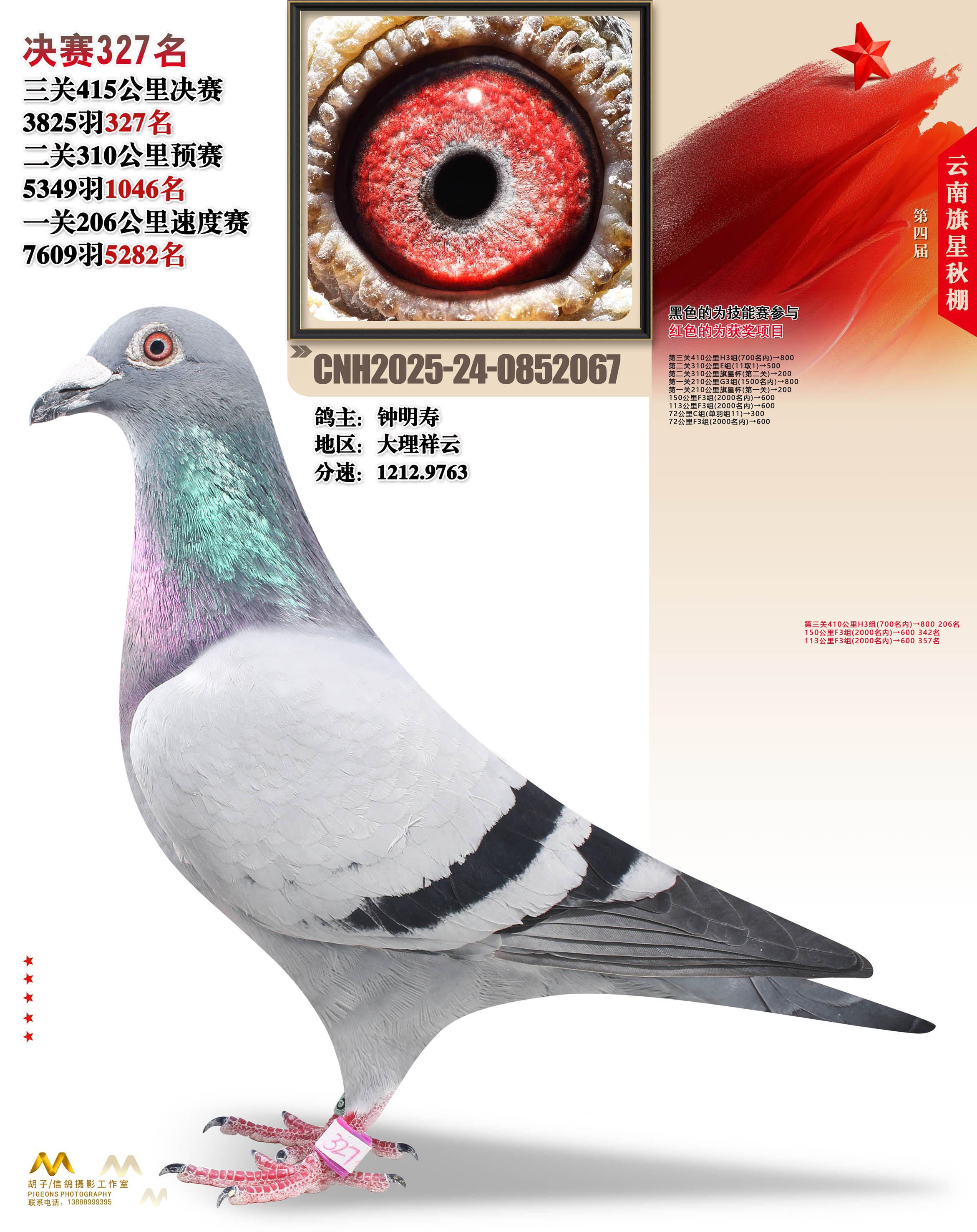 位置:云南大理旗星赛鸽中心2025获奖鸽展示\决赛327名